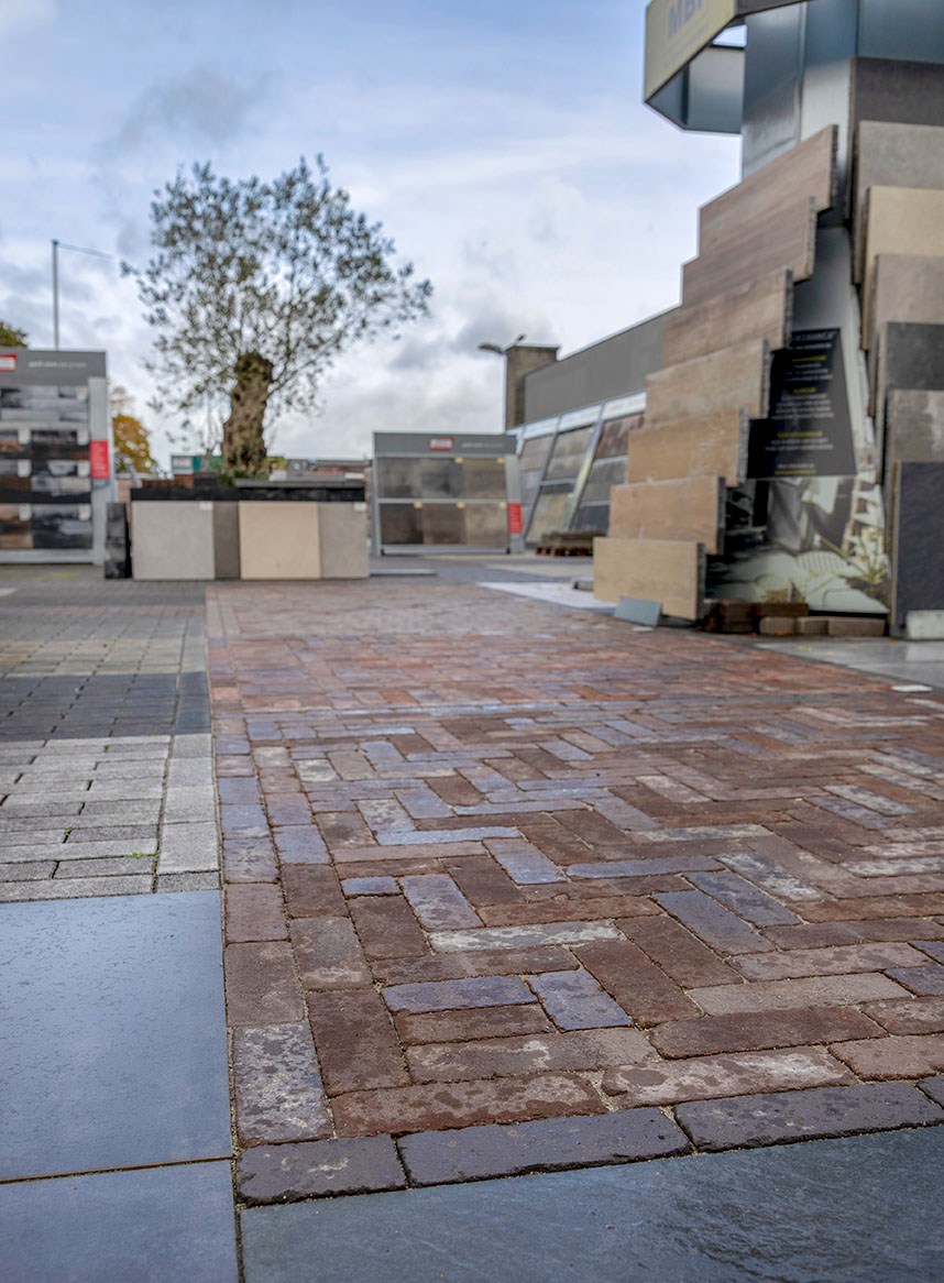 3. Gebruik van hoogwaardige materialen zoals gebakken klinkers, betonstenen en natuursteen.